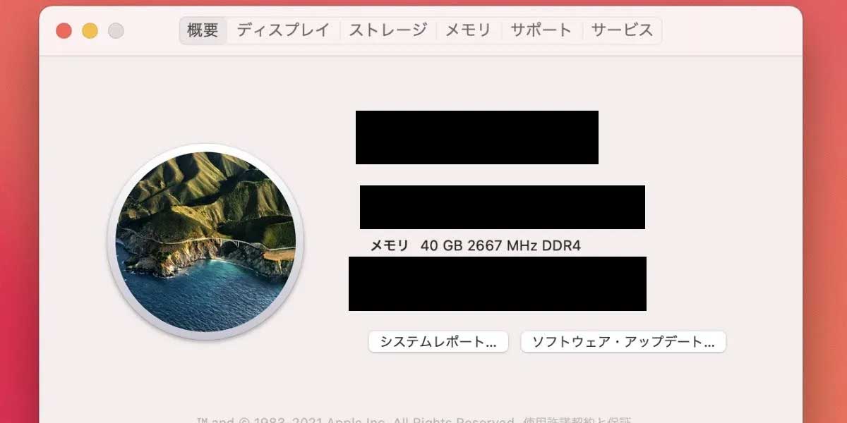 メモリの横に書いてある数字がメモリ容量になります。(この写真では、40GBメモリ容量があるということになります。)