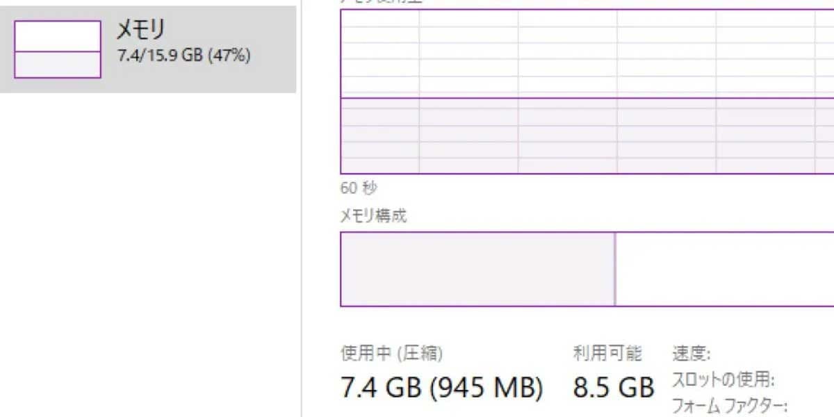 もし、余裕のあるメモリが十数%もない場合は、もう少し余裕を持って用意した方が良いでしょう。