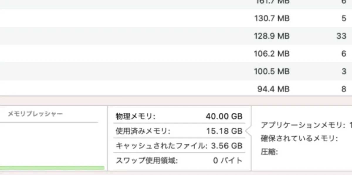 この図の場合は40GBメモリの内15.18GBだけ使用していて、かなり余裕があるということがわかります。